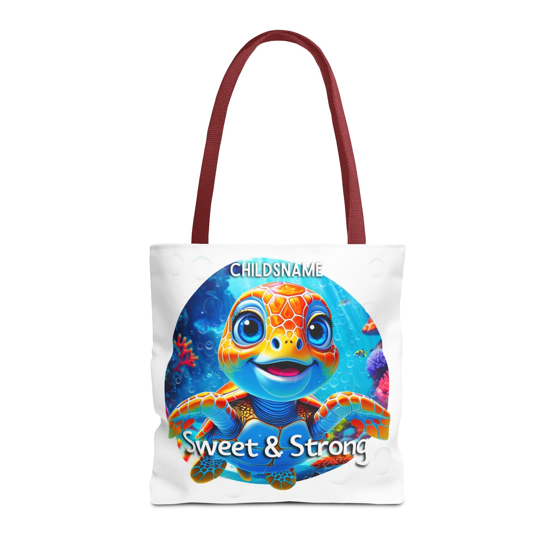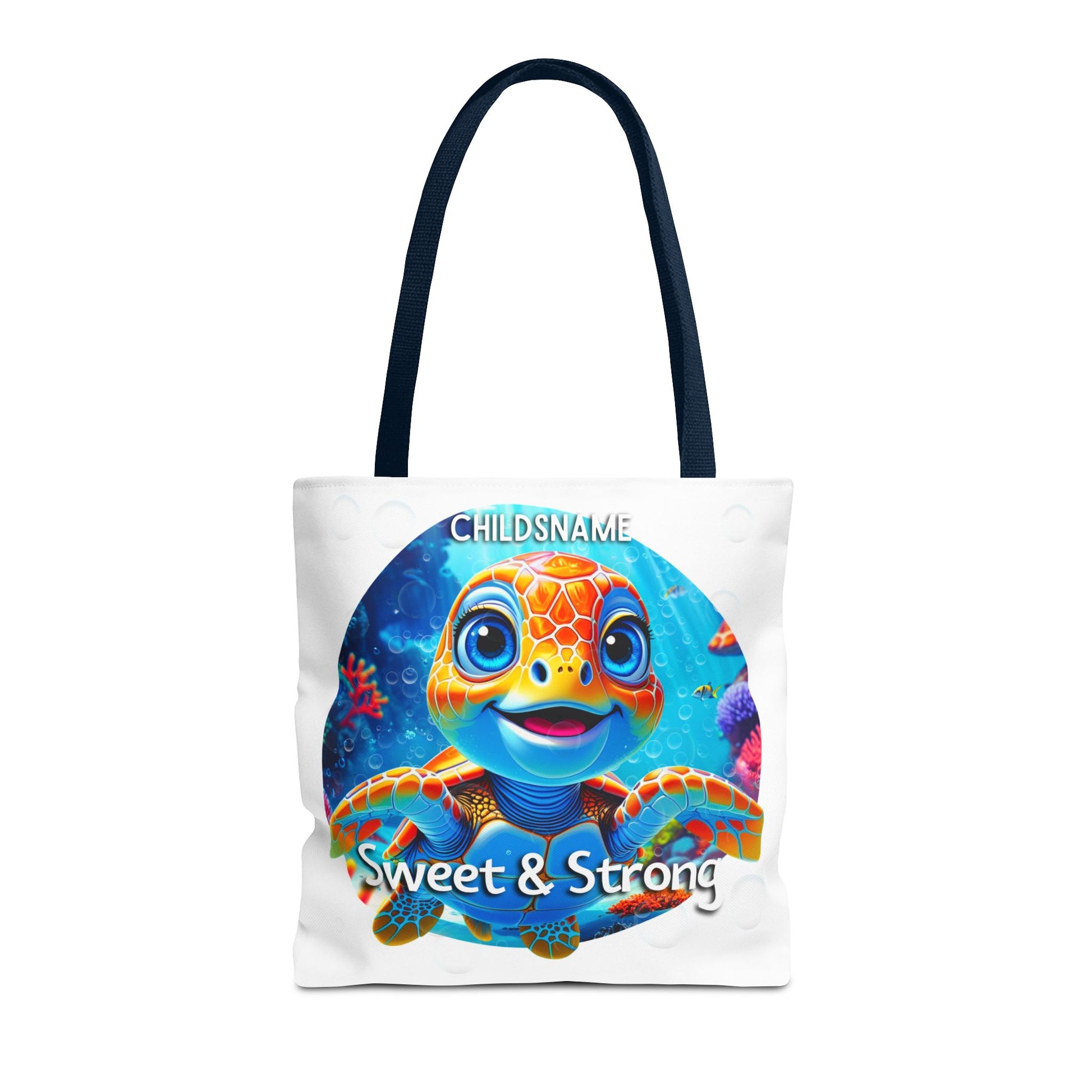 Featuring an adorable turtle design and your child’s custom name, this ocean-inspired tote celebrates gentle hearts and strong spirits. The traits Sweet & Strong encourage confidence, resilience, and compassion just like a sea turtle swimming calmly through the waves.