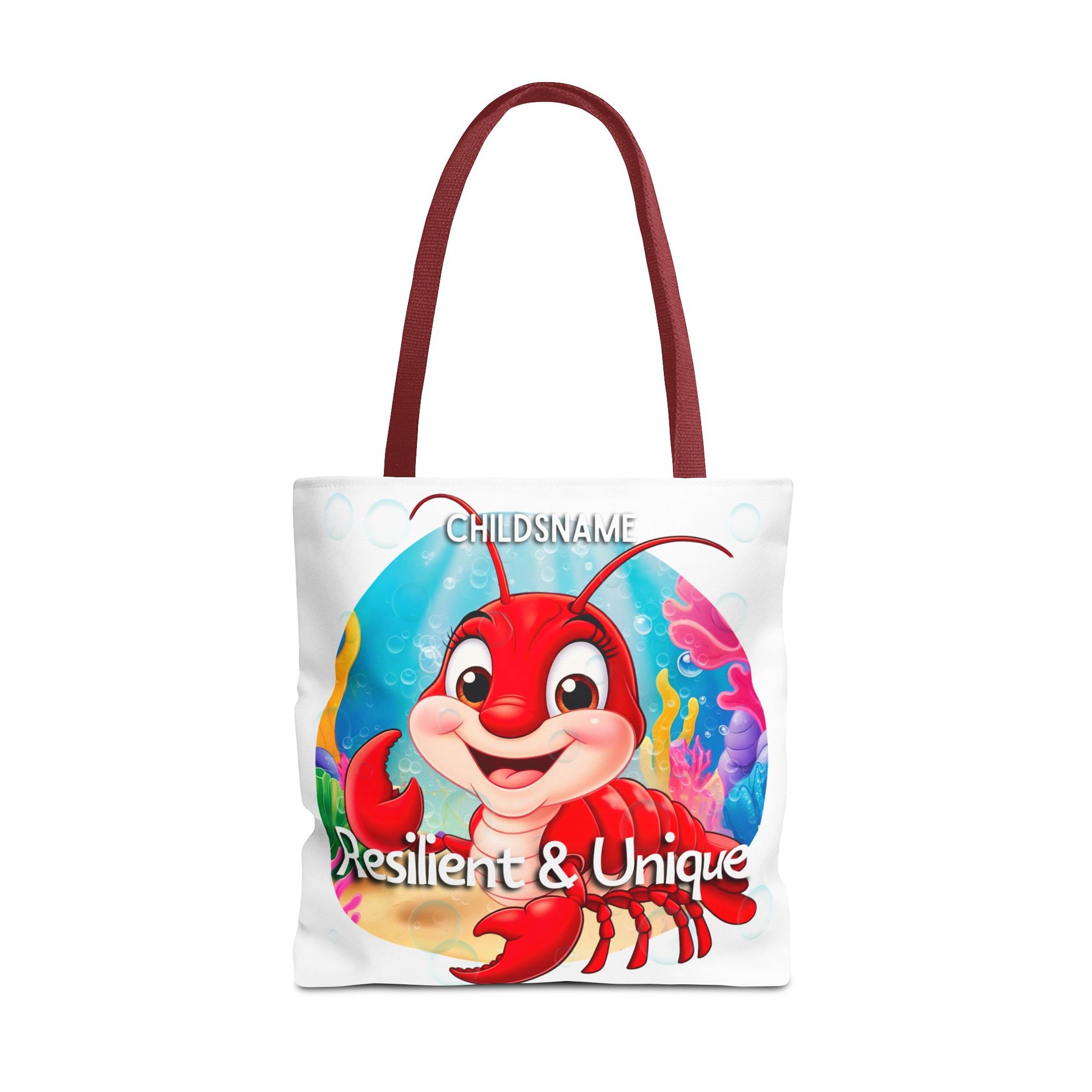 Make beach days and adventures extra special with this Personalized Kids Lobster Beach Tote Bag, featuring a bold, playful lobster design paired with the empowering traits Resilient & Unique—just like your child!
